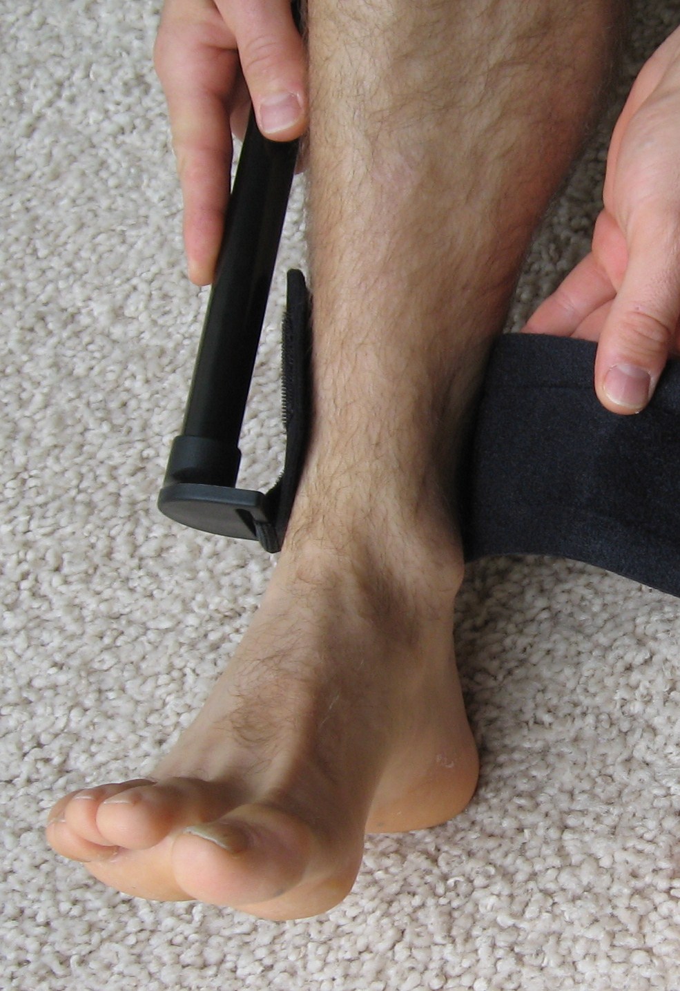 Step 1 - Apply strap to calf or below Step 2 - Apply groin strap after Step 3 - Lock in course adjustment